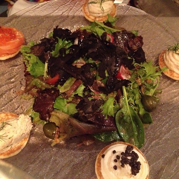 It was a sunny day and perfect for having lunch outside so we decided to try La Terrasse Montaigne which is a charming haven of greenery situated outside of the Hotel Plaza Athenee. Before getting to the food i need to state the fact that there is something seriously wrong with the customers there ! Each and everyone seemed like they had a stick up their toochies ( not to be rude ), they were eating their club sandwich like it was 400 euros caviar, it was really sad. As for the food, all in all it was good, nothing out of this world, just a good ceasar,foie gras with chutney, crab club sandwich, some sushi and their "famous" chicken and black truffles cheese squares that had no taste whatsoever of truffles. Now getting for desserts which was the most exciting part for me because Christophe michalak is the pastry chef there. We had the millefeuille and mignardise which was ok, the "L'oreade", which is the prize-winner dessert from pastry world cup was actually too pretty to be eaten, and i saved the last for the best which was the "religieuse caramel au beurre sale". OMG it was the heavenly, it's light and melts in your mouth with the delicious taste of salted caramel, it was one of the best desserts i have ever had. I can't comment about the prices because at the end of the day whether the food was amazing or not you are paying for the name of the hotel and the chefs there.